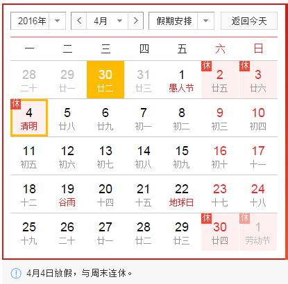 關(guān)于2016清明節(jié)放假安排的通知