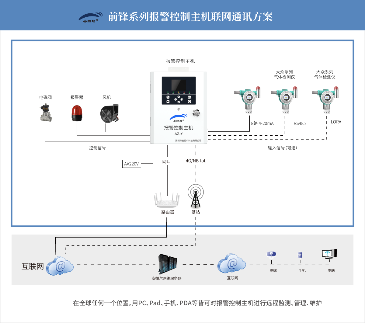 注:關(guān)于前鋒系列多功能報警控制主機(jī)更多特點請咨詢廠家? 安帕爾